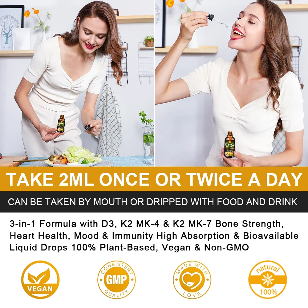 1. Поддерживать прочные кости. Витамин D3 с K2 может поддерживать сильные кости, поддержку иммунной системы, здоровую мышечную функцию. Они являются естественными партнерами и мощным сочетанием, чтобы помочь оптимизировать ваше здоровье.