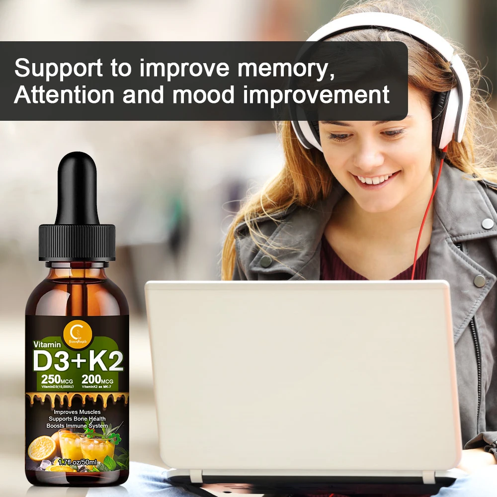 3. Субъязычные оральные капли: жидкая форма витамина D3 + K2, легко для людей поглощать и использовать. Для вегетарианцев и вегетарианцев трудно получить достаточное количество D3, но GPGP Greenpeople витамин D3 + K2 может непрерывно дополнять витамин D3 для людей.