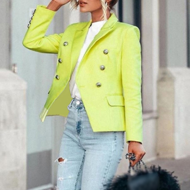 Плотно прилегает и качество: Этот однотонный Тонкий Повседневный женский костюм, новая женская одежда на осень и зиму. Женский однотонный кардиган в стиле досуга, кардиган, однотонный двубортный дизайн, процесс формирования высокой температуры, добавит моды вашему моделированию, продемонстрирует живой и уникальный шарм женщин.