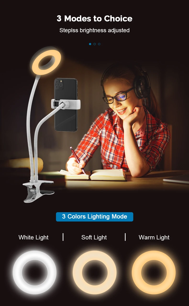 2. 10 регулируемых яркости и 3 цвета светодиодный светильник: дизайн светодиодный светильник с 10 регулируемой яркостью удовлетворяет все ваши потребности в различных условиях. Он пригодится, когда вам понадобится дополнительный светильник для создания, фотографирования, создания видео, чтения книг и потоковой передачи в реальном времени!