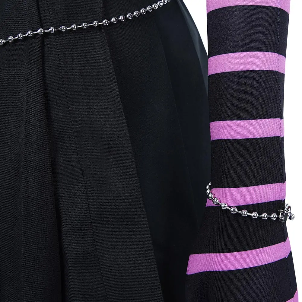 В комплекте: браслет + серьги * 2 + перчатки + повязка на голову + галстук + кольцо * 3 + юбка + чулки + ремешок + топ + поясная цепочка