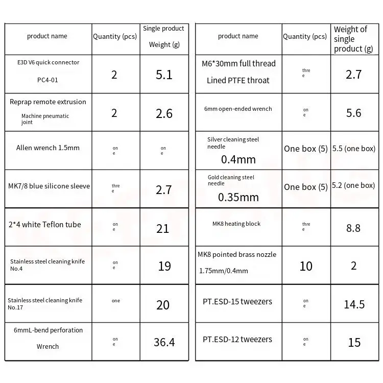 Запчасти для 3D-принтера, аксессуар Mk8, латунная насадка, нагревательный блок, набор инструментов, модель лопаты, 41 шт., комбинация для очистки платформы