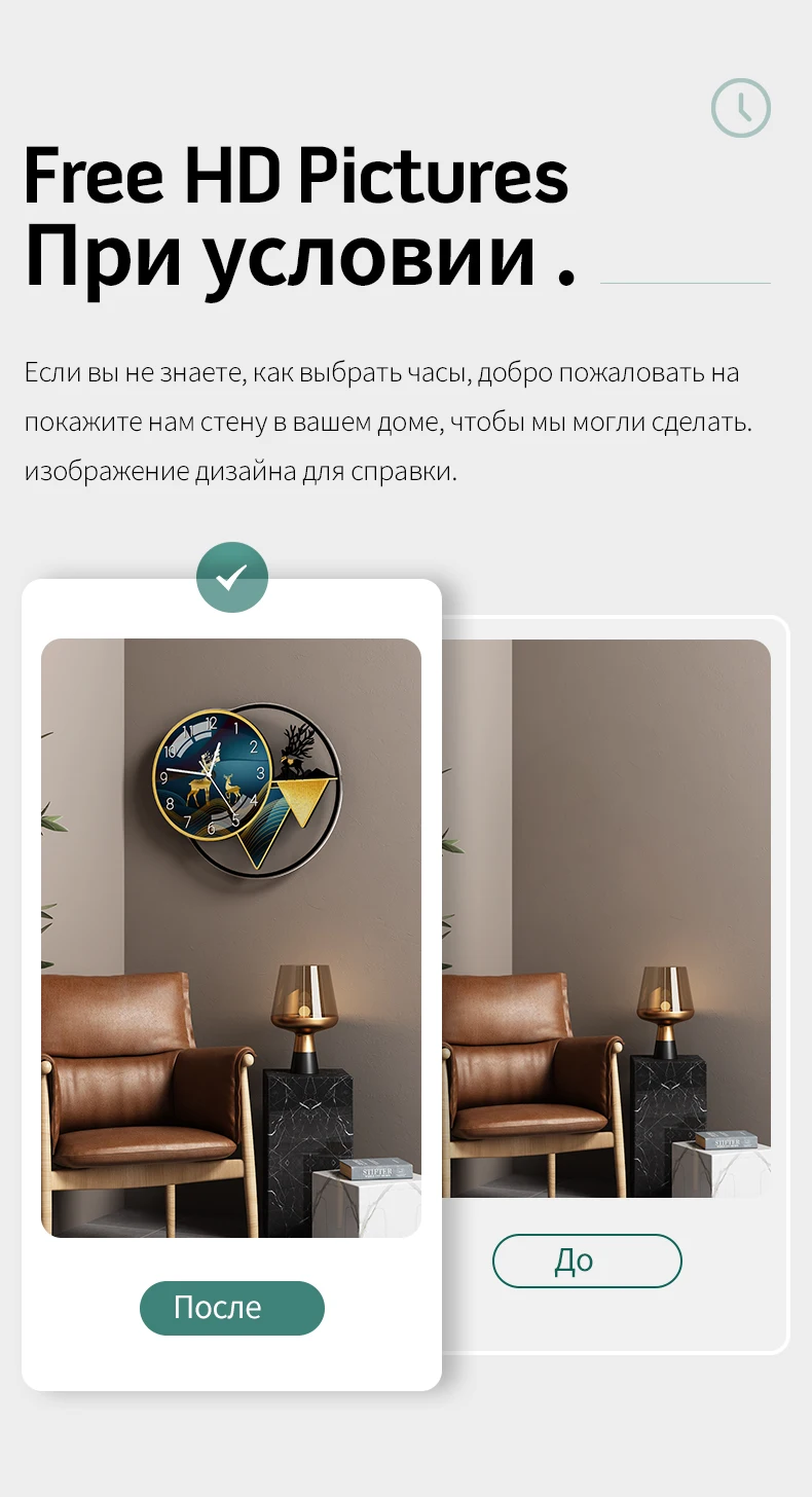 Если у вас нет идеи выбора часов, добро пожаловать, чтобы показать нам стену в вашем доме, чтобы мы могли сделать дизайнерское изображение для вашей справки.