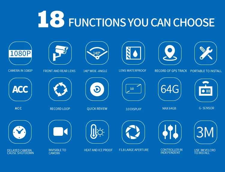 1. Motorcycle Dash Cam - 3" High-Resolution LCD Screen host, real-time display front and rear cameras, support One-button shooting/recording, 1080P video loop recording, WDR Processing, App sharing