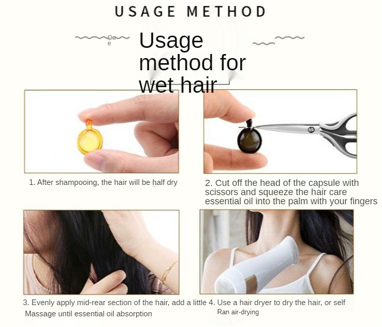 Использование:После мытья шампунем используйте полотенце, чтобы вытереть его на 70%, откройте капсулу и положите ее на руки, равномерно нанесите на волосы, аккуратно массируйте, не нужно краску. Обычно я чувствую, что мои волосы грязные, и я также могу их вытереть. (Также можно использовать в сочетании с формой oyster oil)