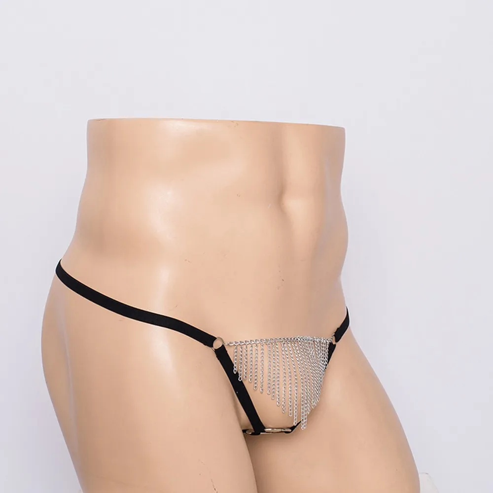 Открытые стринги для пениса, мужские сексуальные прозрачные стринги с отверстием для пениса, Гей Трусы с Т-образным ремешком, металлические трусики из цепочек, Эротическое белье для геев