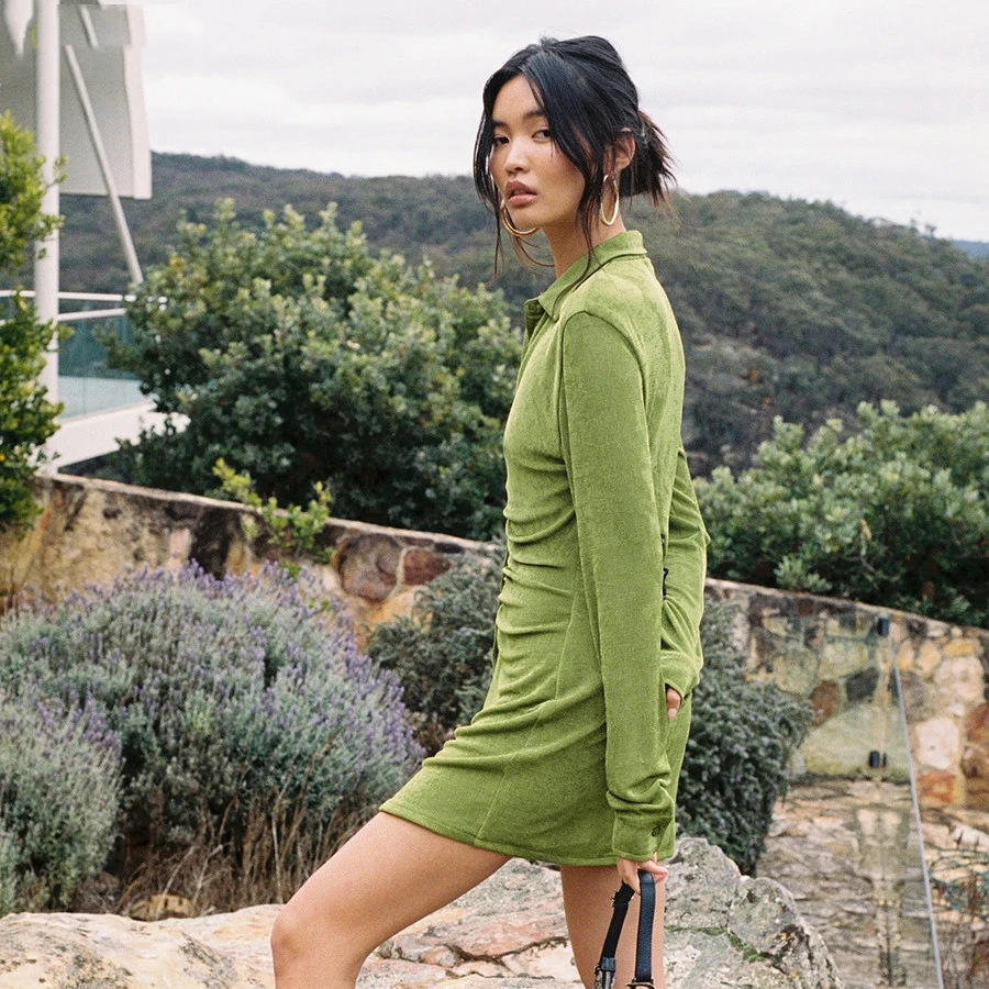 Hugcitar сексуальное мини-платье с лямкой на шее вырезами плечах 2021 осенние женские