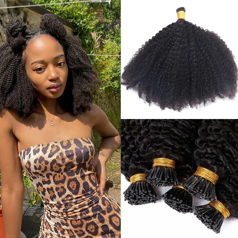 Афро кудрявый I Tip человеческие волосы для наращивания 4B 4C I Tips Microlinks девственные монгольские Remy объемные волосы для наращивания для черных женщин