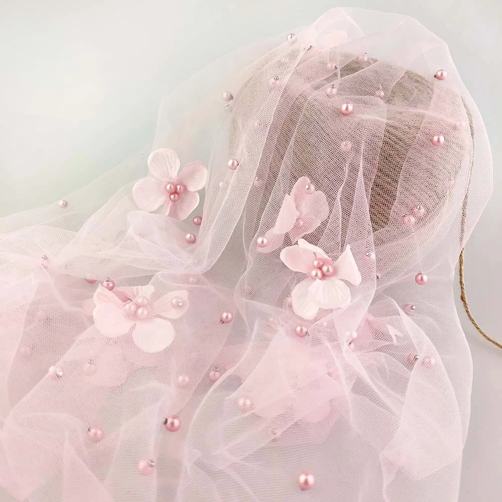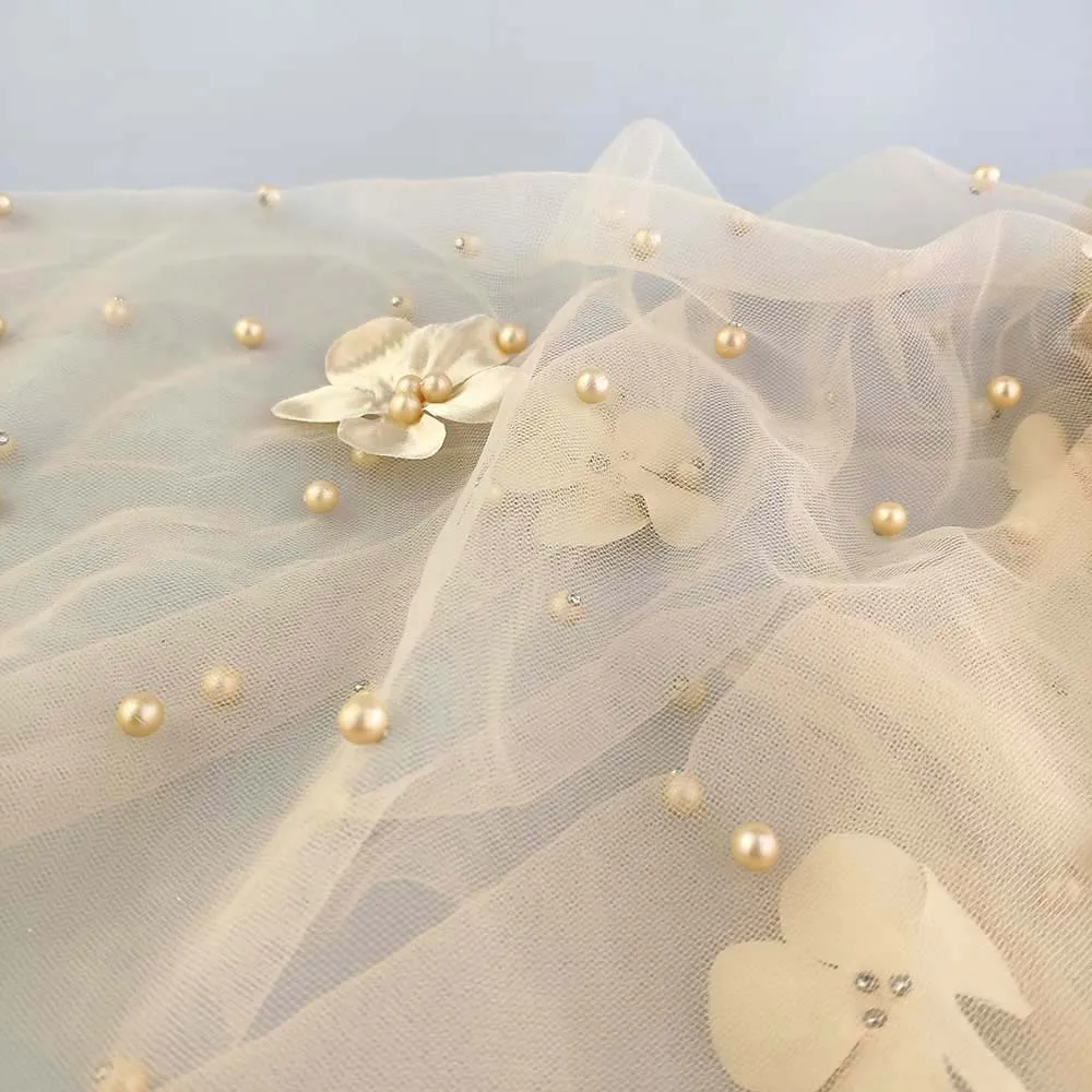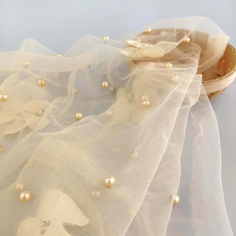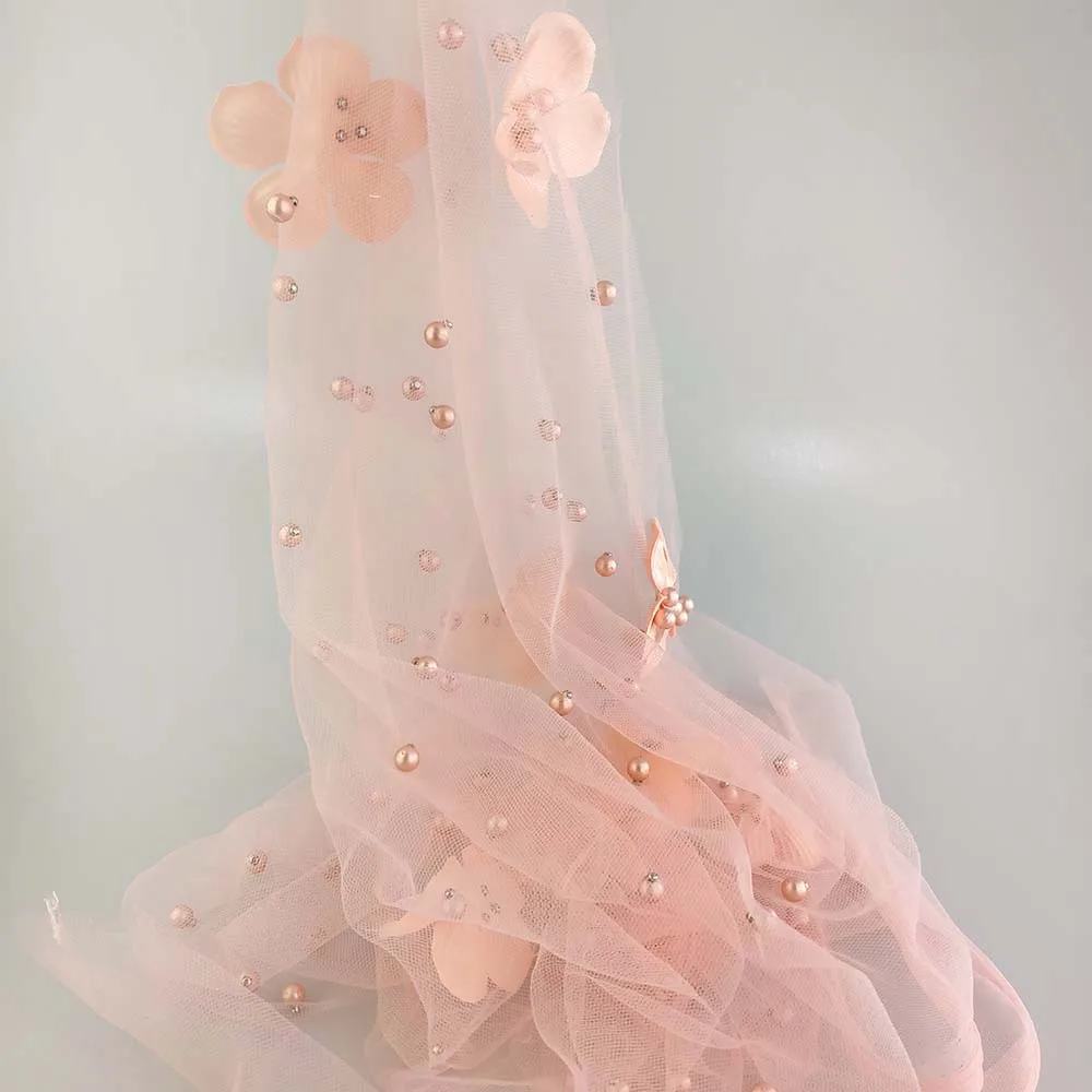Персиковая африканская Кружевная Сетка высокого качества с вышивкой 5 ярдов 009