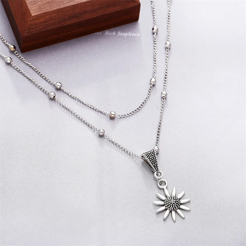 Изысканные винтажные серебряные ожерелья с подвеской в виде подсолнуха для женщин