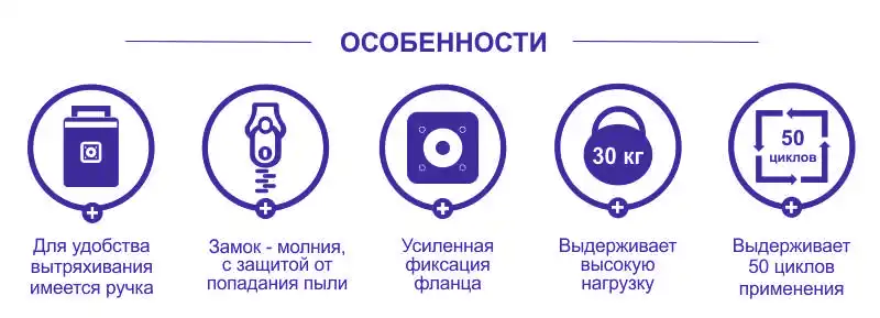Пластиковый фланец пылесборника имеет дополнительное усиленное крепление, благодаря чему мешок выдерживает многократные нагрузки.