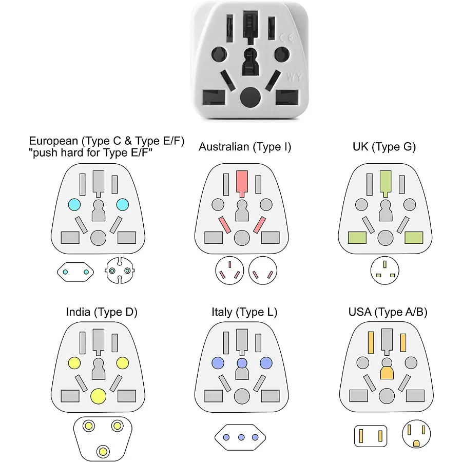 -Note: Power Plug Adapters do not convert voltage, they just change the plug type. Use a proper voltage converter along with a power plug adapter if your device is incompatible with the country's voltage.