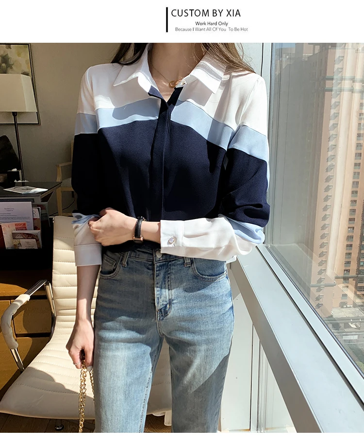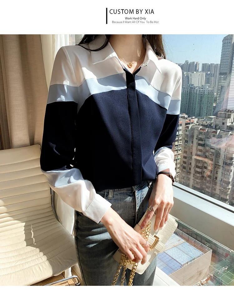 Блузка женская демисезонная ярко-синяя с длинным рукавом и красной подкладкой |