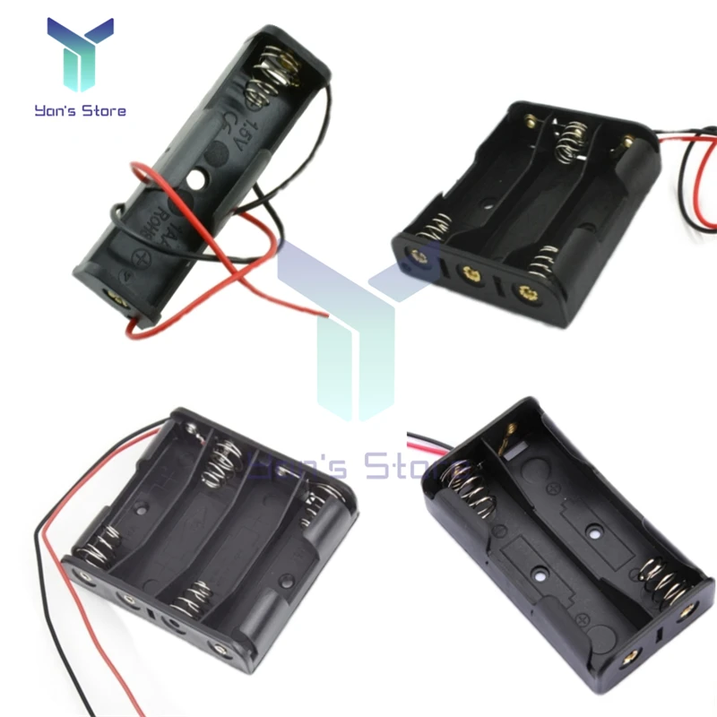 5PCS*Plastic Battery Case Storage Box Holder with Wire Leads for AA 1.5V 1/2/3/4 * AA Battery Case