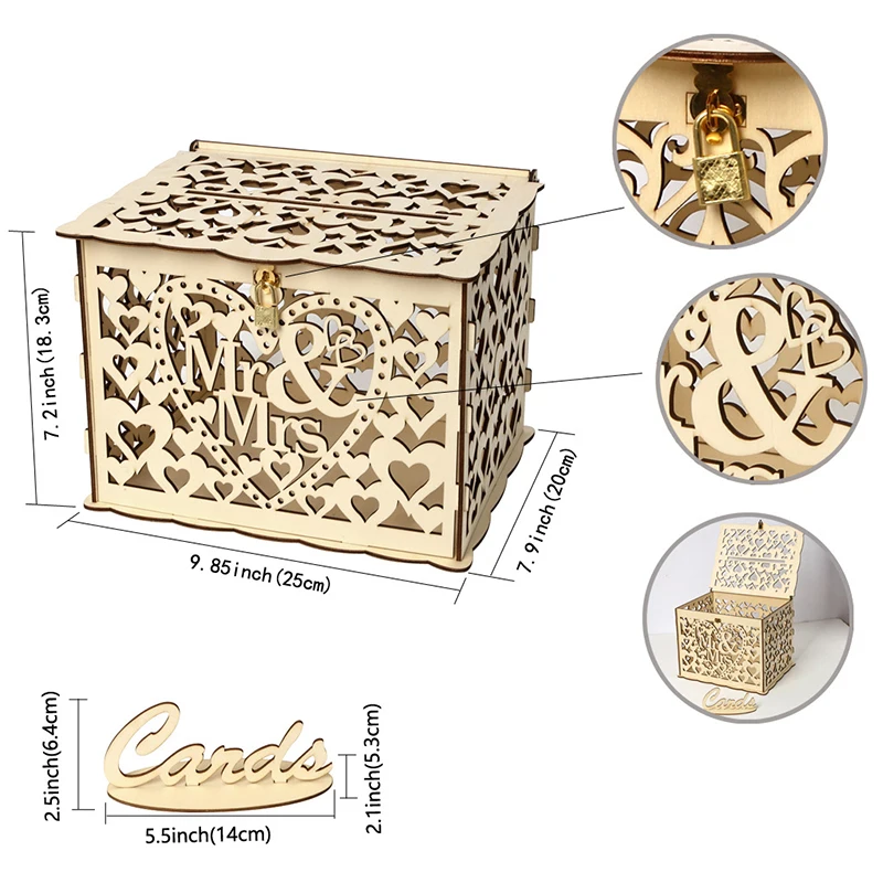 Уникальная Коробка для свадебной открытки с замком станет отличным дополнением к вашему свадебному украшению.