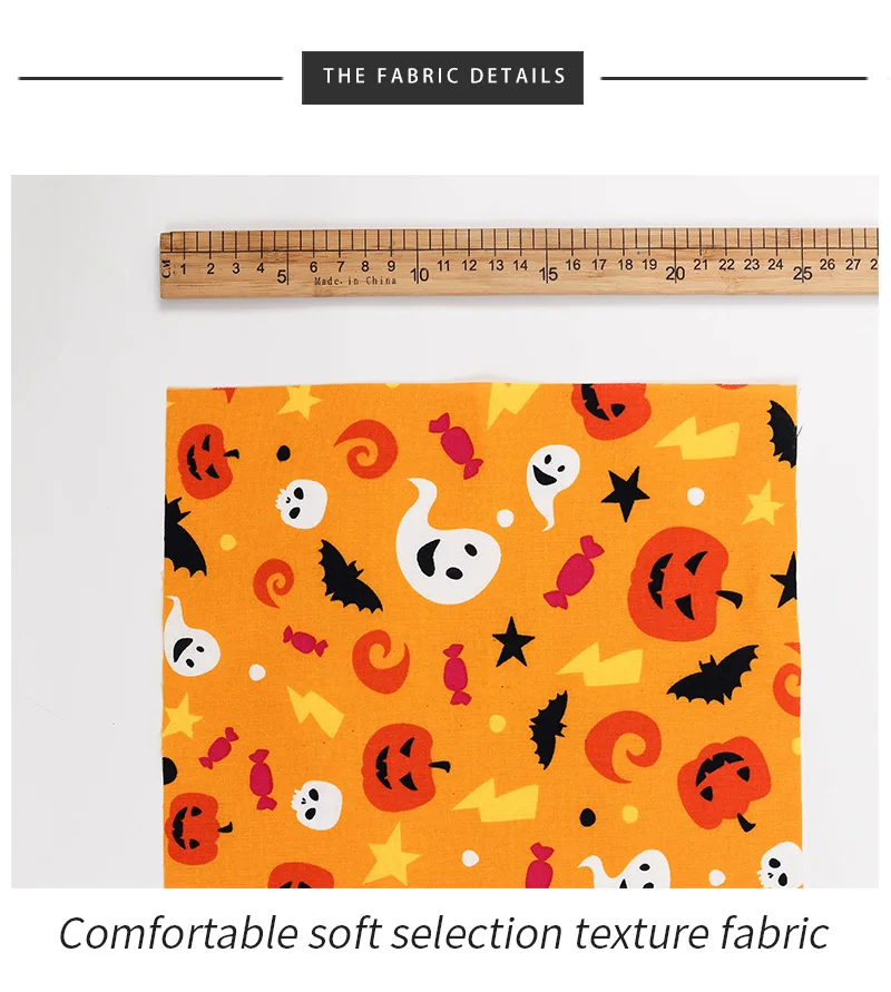 ③ Широкое применение: декоративные ткани на тему Хэллоуина подходят для различных проектов ручной работы, таких как сумка, кошелек, кошелек, детская одежда, лоскутное шитье, фоны для доски объявлений и школьные проекты, украшения для дома, детское постельное белье и много других швейных изделий, просто используйте свое воображение