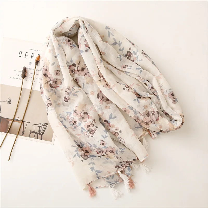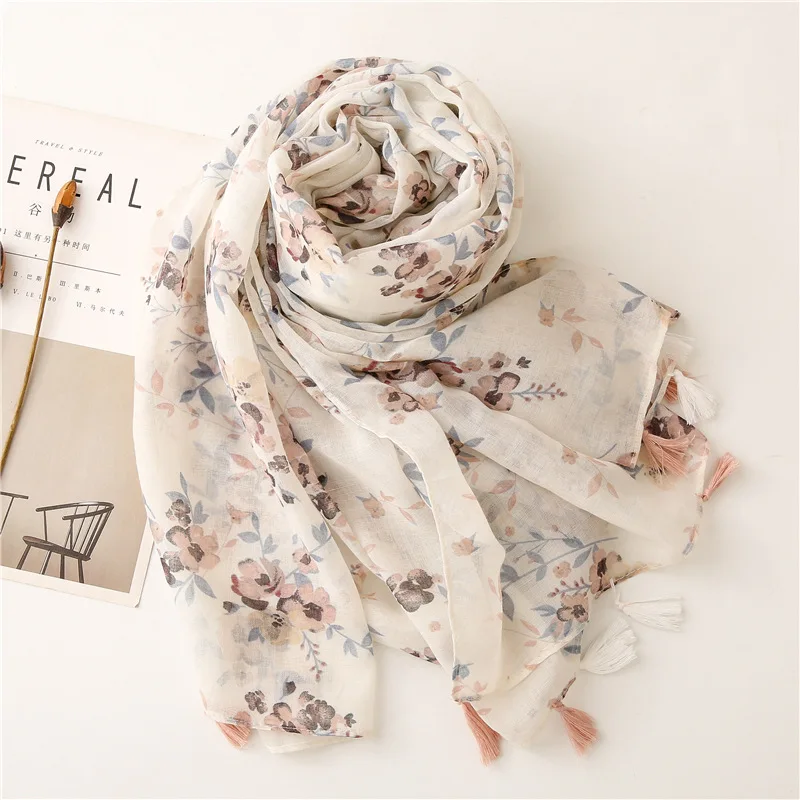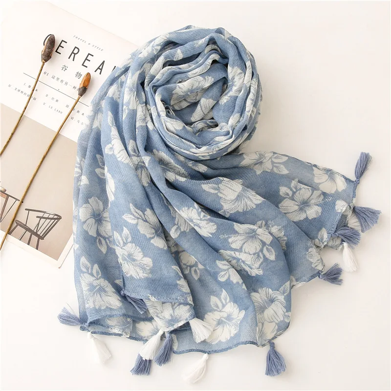 2021 Женская Осенняя мода, винтажная Цветочная кисточка, шаль из вискозы из индийского принта, палантин из пашмины, мусульманский хиджаб, снуд