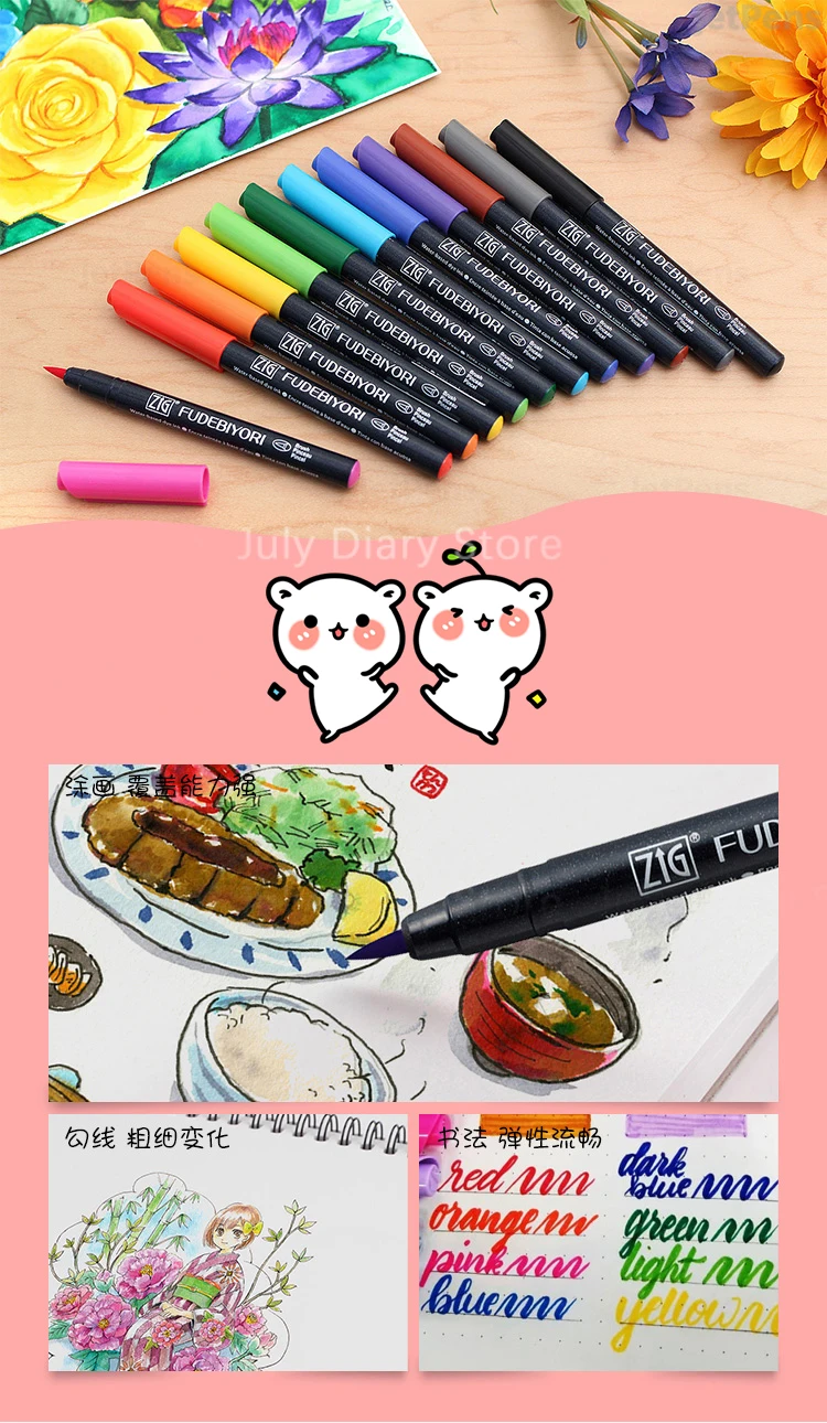 1 шт. Kuretake ZIG Fudebiyori Кисть ручка CBK-55 мягкая 48 цветов акварельные маркерные ручки для рисования надпись DIY Канцтовары