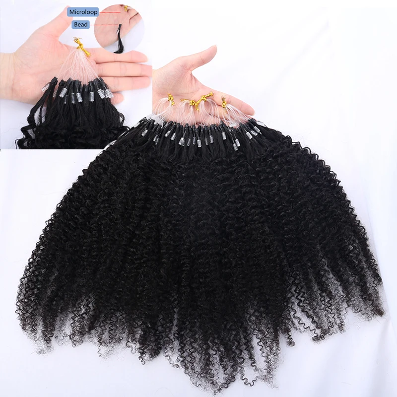 Афро кудрявые микро петли для наращивания волос для черных женщин бразильские кудрявые волосы для наращивания 100 прядей/упаковка