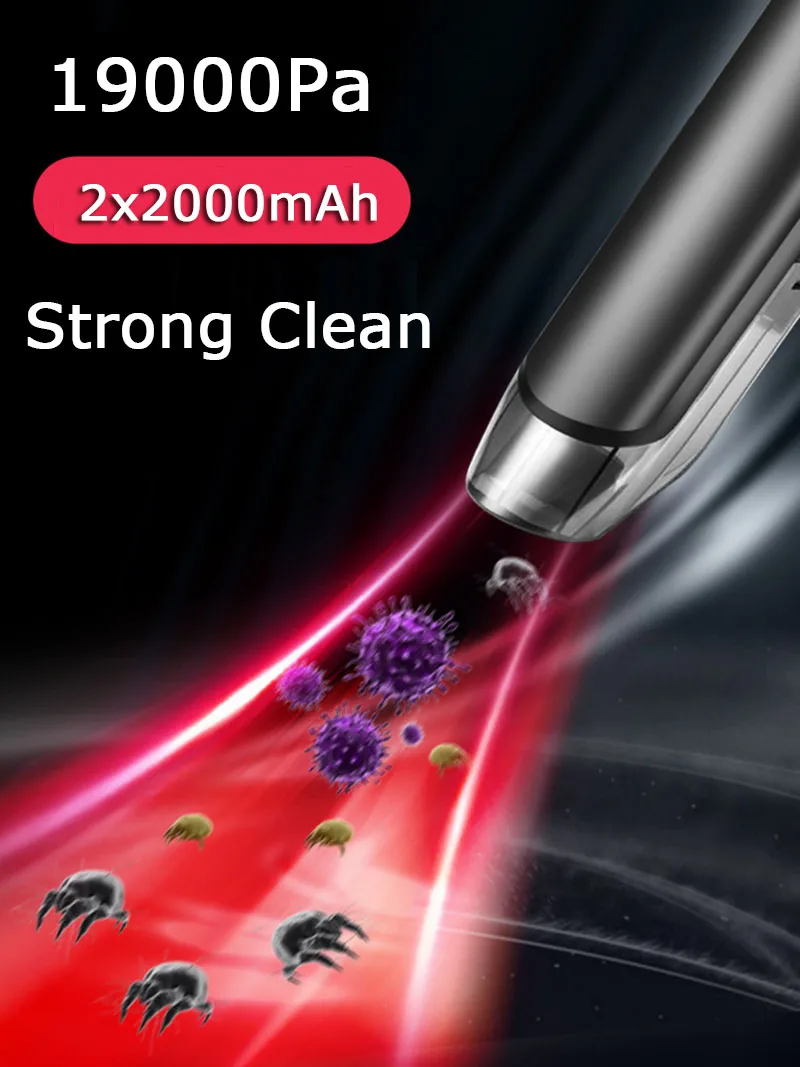 2. 15-30 минут работы:С литиевой батареей большой емкости 2x2500 мАч, она может работать непрерывно до 30 минут после полной зарядки. Пылесос оснащен чашкой для сбора пыли. После того, как ведро для сбора пыли заполнено, вы можете легко нажать кнопку отпускания, чтобы вылить.