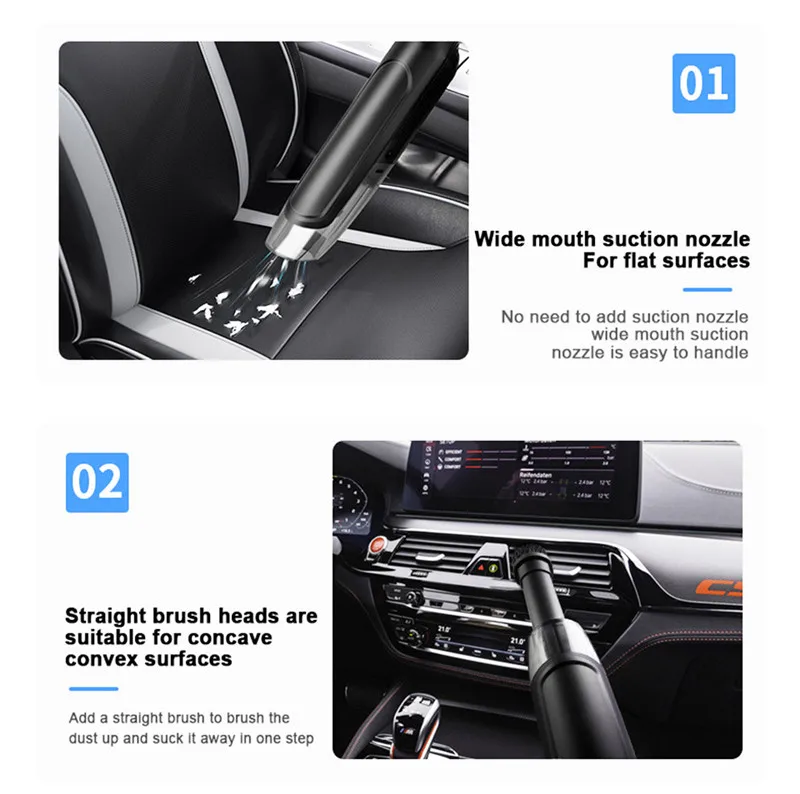 1. Сильное всасывание:Автомобильный пылесос 12V 120W 19000PA может эффективно поглощать волосы животных, закуски, соки и поглощать любые примеси, которые являются влажными или сухими.