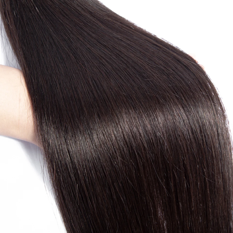 Vallbest волосы 30 дюймов длинные прямые пряди с закрытием Remy бразильские прямые человеческие волосы 3 пряди с 4X4 шнуровкойVallbest cheveux 30 pouces longs faisceaux droits avec fermeture Remy brésilien cheveux humains raides 3 faisceaux avec fermeture en dentelle 4X4