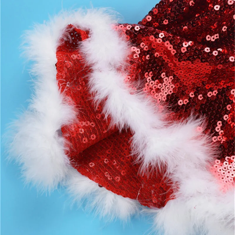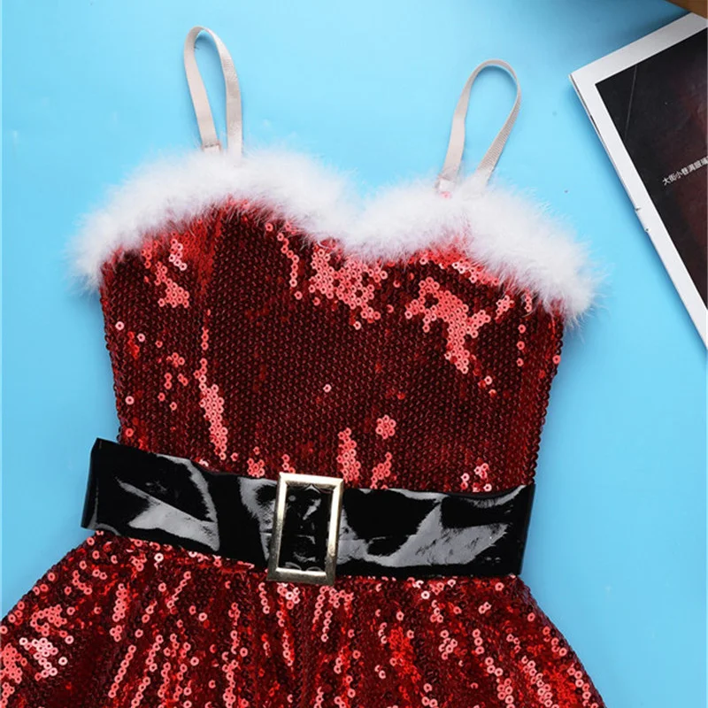 Детский Рождественский танцевальный костюм Санты с блестками для девочек балетное гимнастическое платье, наряд платье на тонких бретельках для катания на коньках + шапочка с рукавами