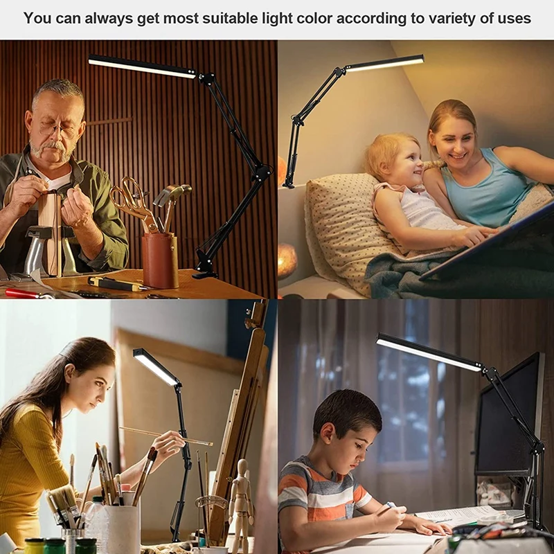 [FLEXIBLE & ADJUSTABLE]- Strong aluminum clamp supports tabletop and holds the swing arm lamp securely in place. 360° rotating lamp, 225° rotating base, 270° adjustable metal arm, freely adjustable angles, and multiple positions, you can adjust the light direction according to your personal need.