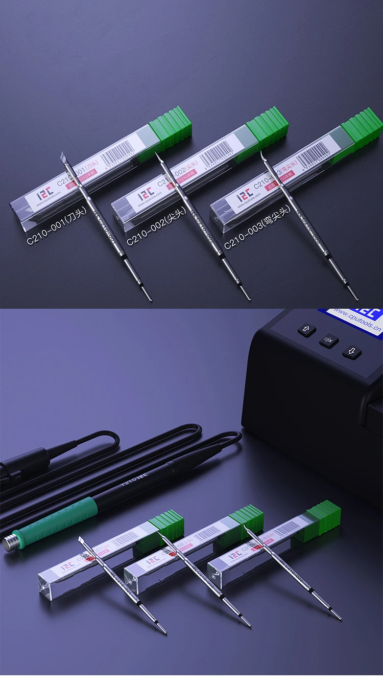 I2C JBC C210 наконечники для пайки/наконечники картриджей для JBC T210 прецизионные ручки, C210 патроны для оригинальной JBC CD-2SD / CD-2SHE прецизионная паяльная станция, прямая головка/Угловая головка/Ножевая головка с железным наконечником для высокоточных ручек JBC T210.
