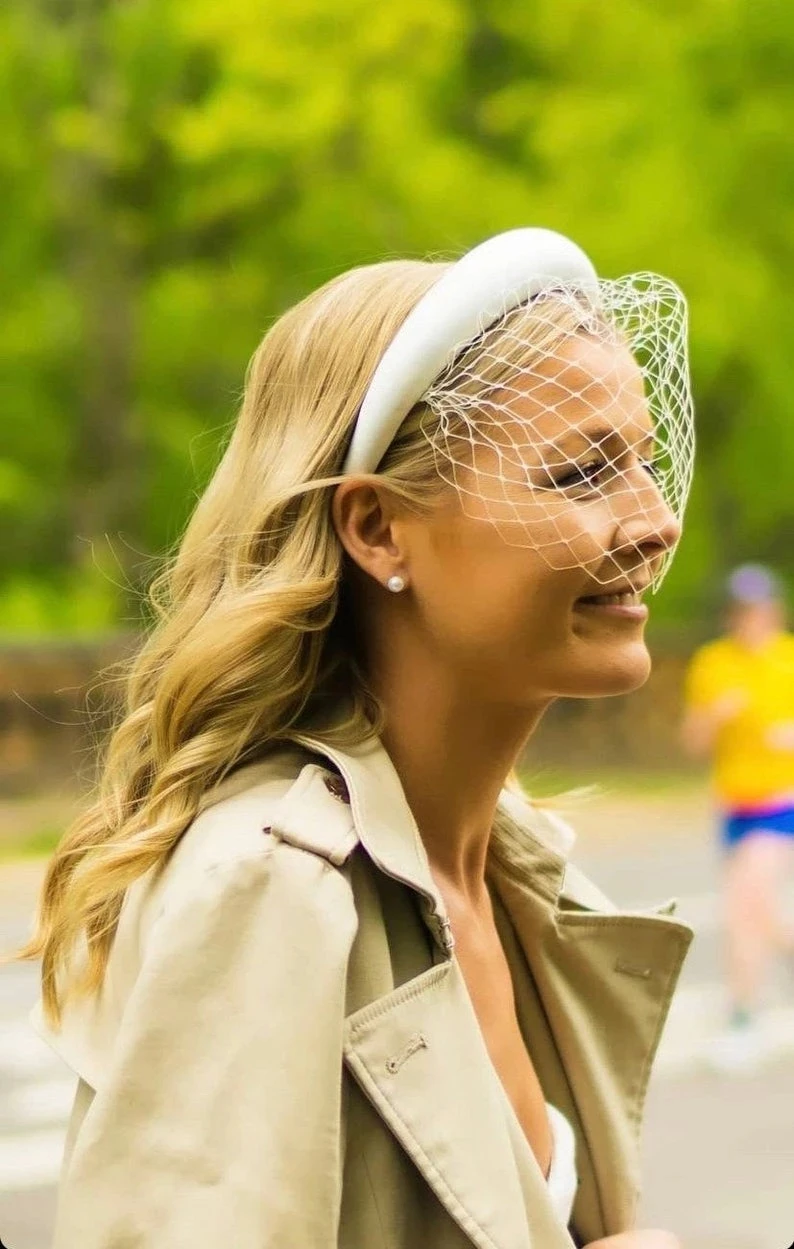 Белая повязка на голову стразы заколка для волос невесты птичья клетка
