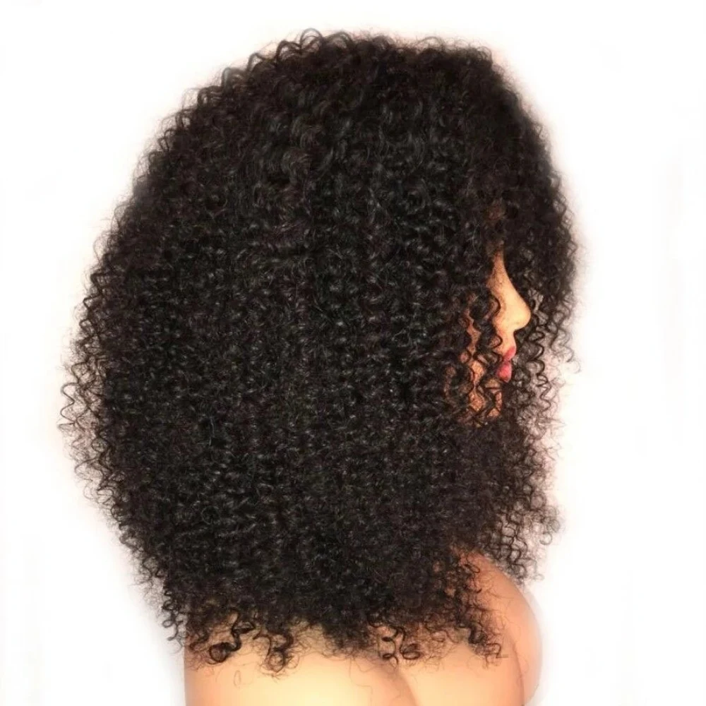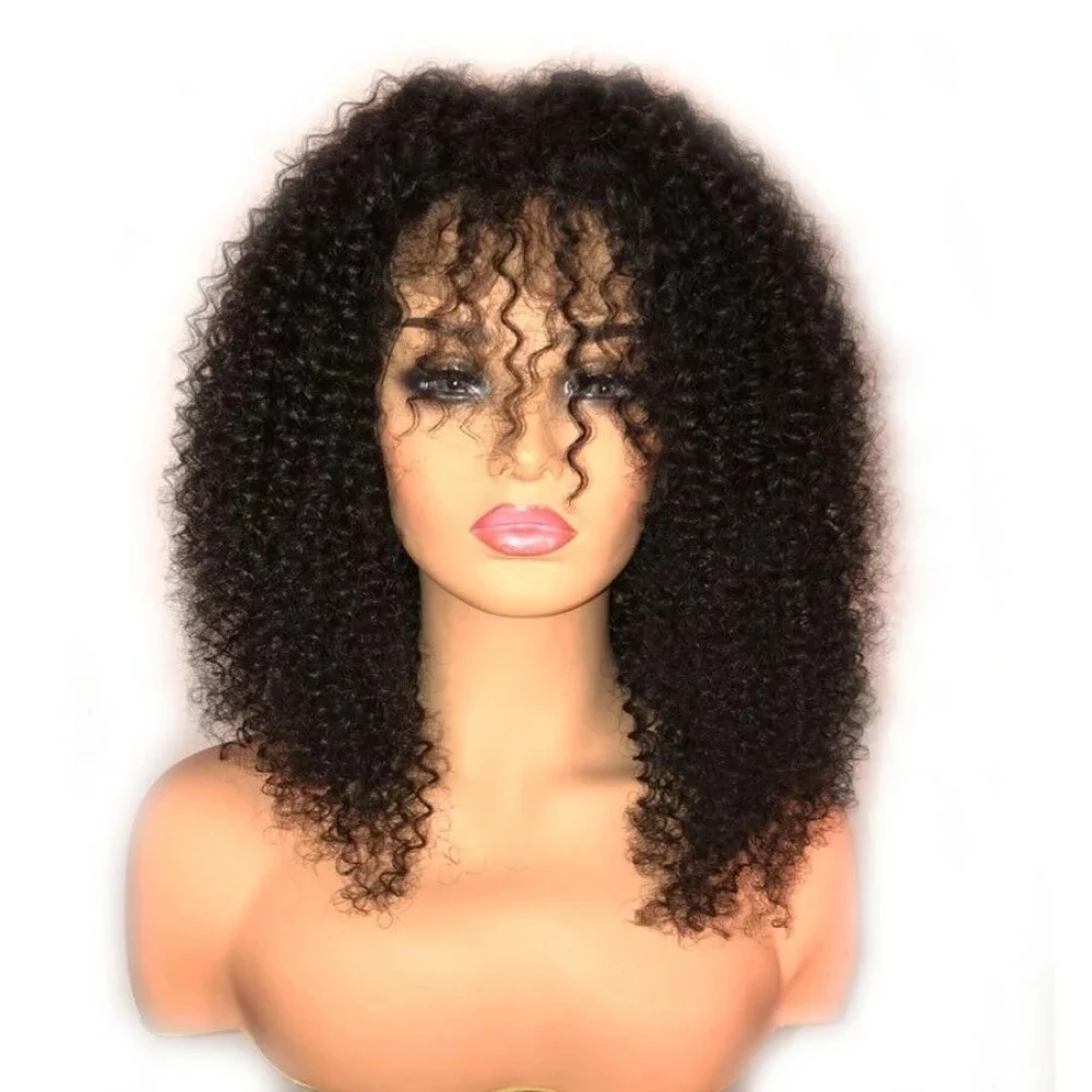 Афро кудрявые головы Топ парик с челкой 200% плотность монгольские Remy человеческие волосы парик Шелковый топ полная машина Парики кожа база O часть