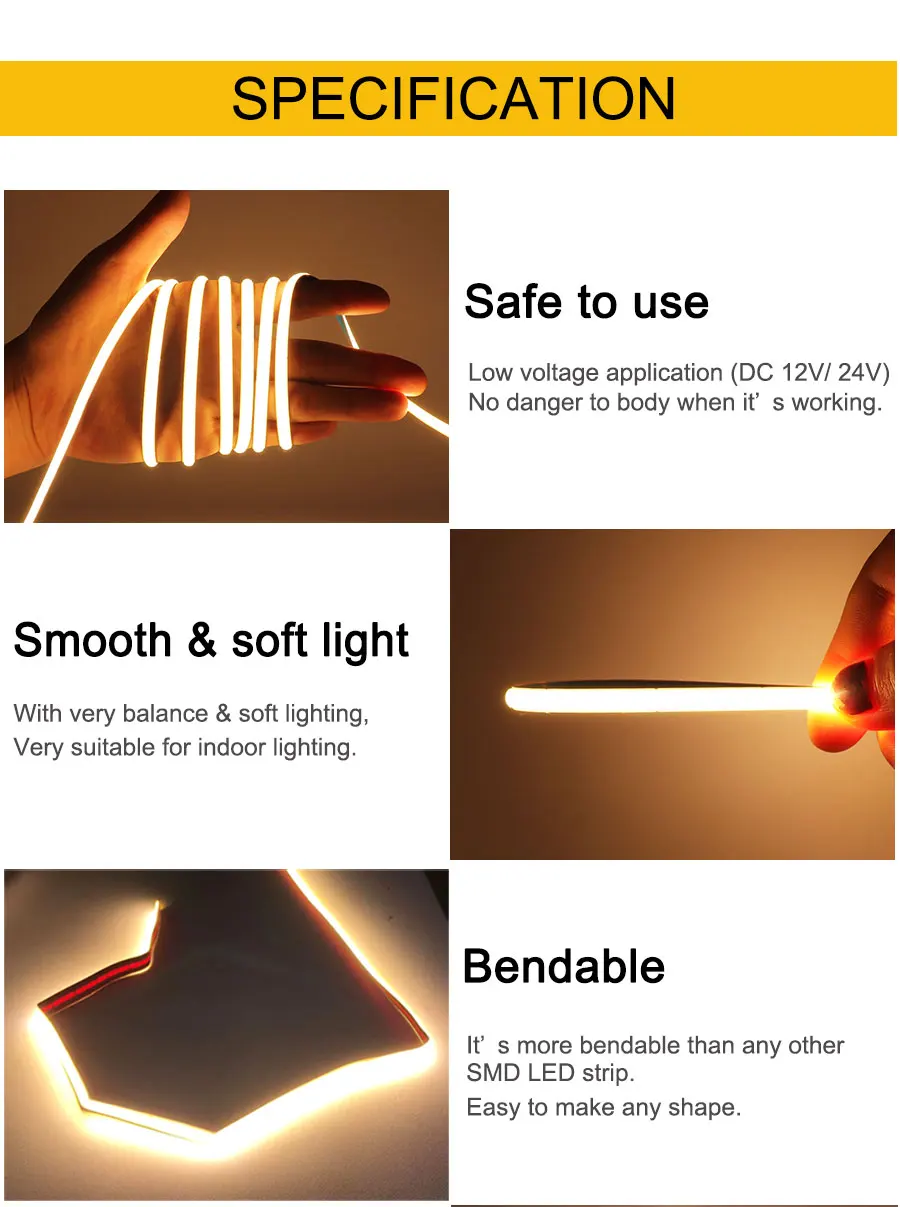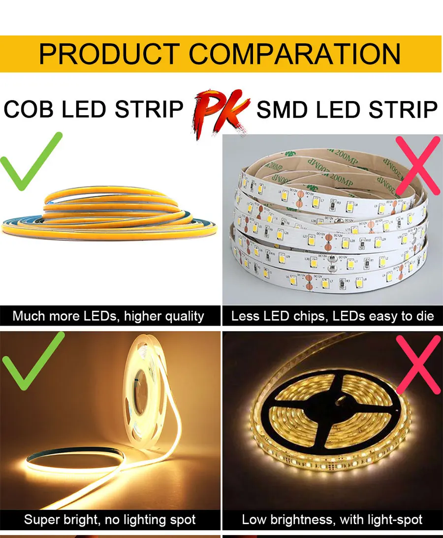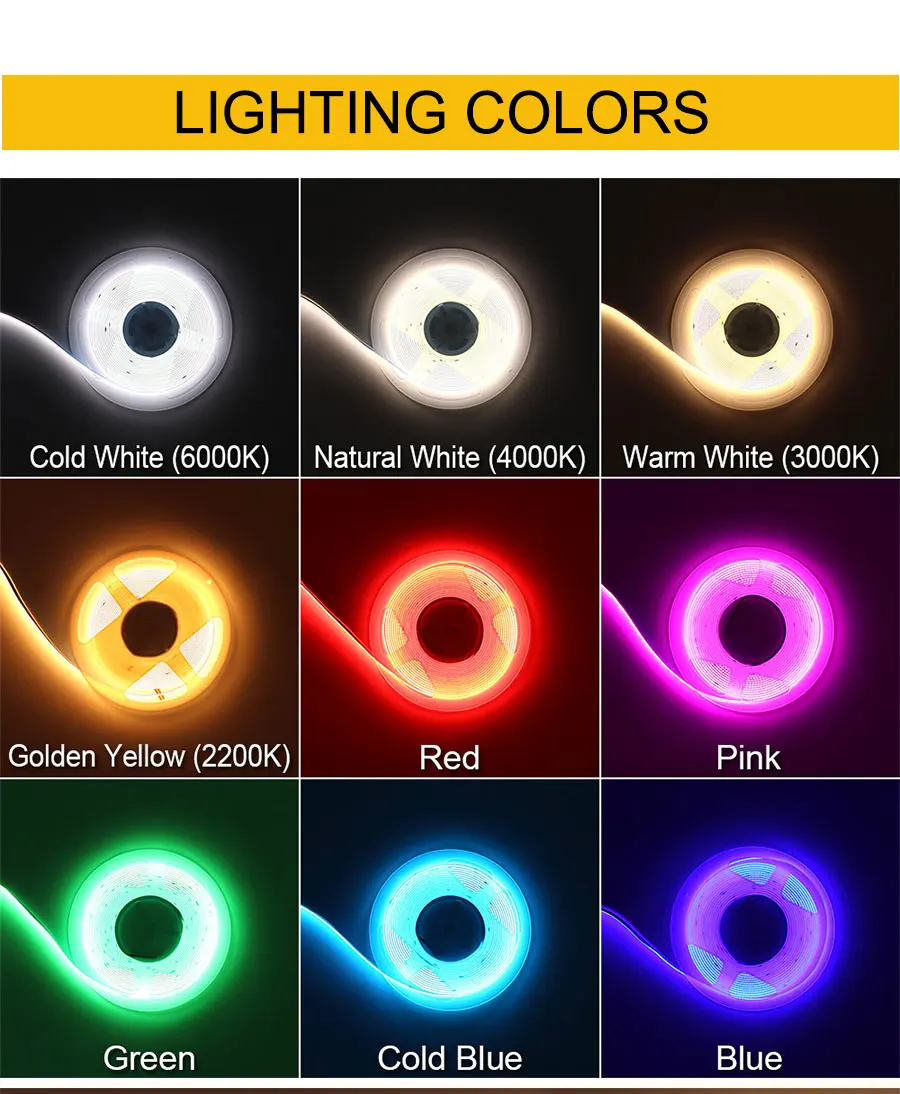 1 шт. COB Светодиодная лента (с клейкой лентой на задней части COB ленты)