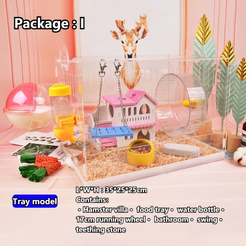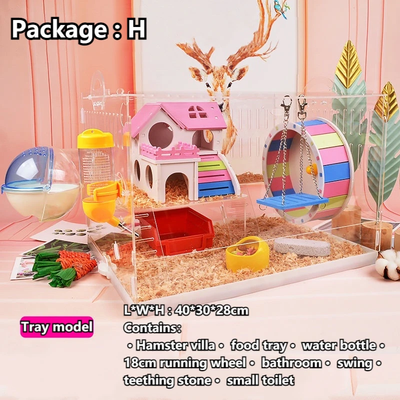 Хомяк садовая вилла, прозрачный поднос для еды, бутылка для воды, колесо для бега, ванная комната