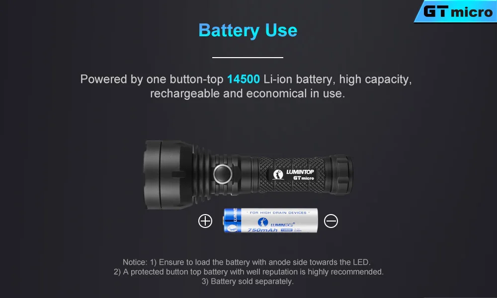 Обратите внимание, GT Micro не поддерживает батарею AA. Только 14500 без защитной батареи.