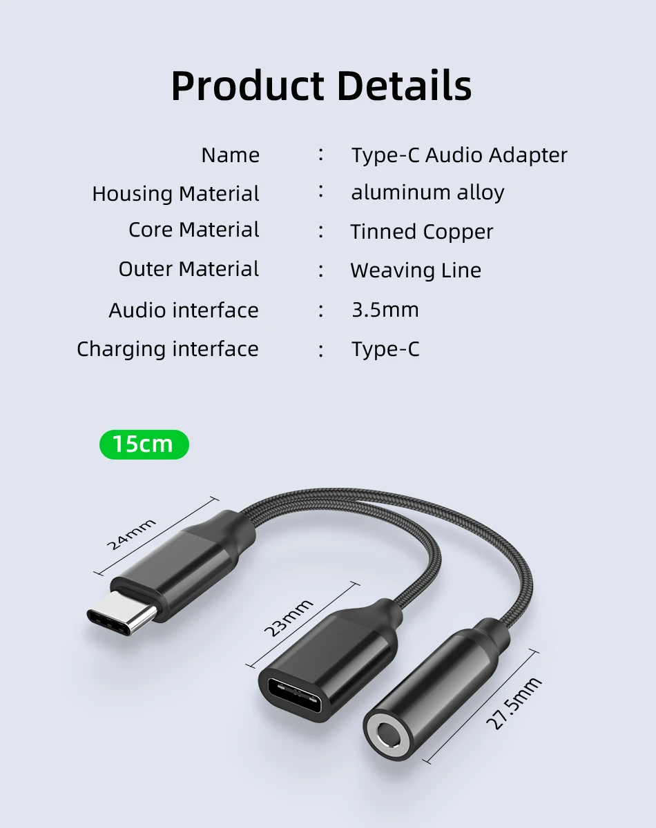 Примечание: в основном подходит для мобильных телефонов типа c без разъема для наушников 3,5 мм, совместим с некоторыми с разъемом для наушников 3,5 мм