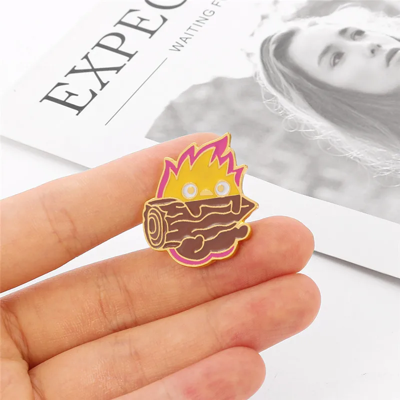 Милый Calcifer дерево значок Ходячий замок булавки забавные огненный демон значок аниме для компьютерщика, геймера аксессуар