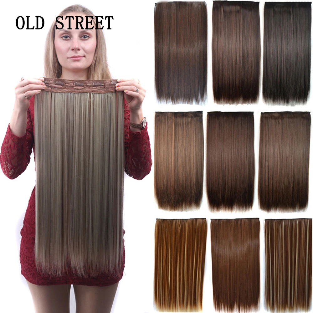 Синтетические волосы длинные прямые волосы на заколках для наращивания 5 клипов 24 дюйма 120 г для женщин накладные волосы из высокотемпературного волокна