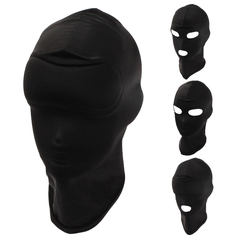 Взрослые открытые глаза рот головной убор маска капюшон дышащий с завязанными глазами Черный Полный головной убор Косплей раб БДСМ бондаж секс игрушки Ju24 21