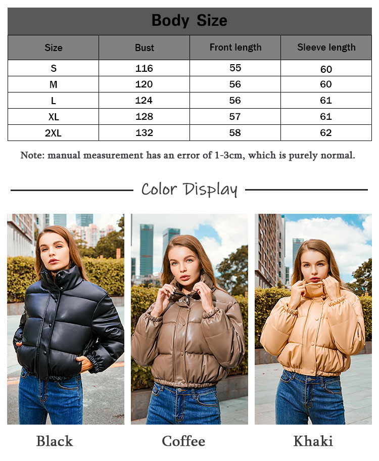 Женская куртка с воротником-стойкой; Короткая теплая хлопковая куртка; Кожаная однотонная куртка с длинными рукавами; Новинка 2021 года; Сезон весна-осень; Модная повседневная одежда