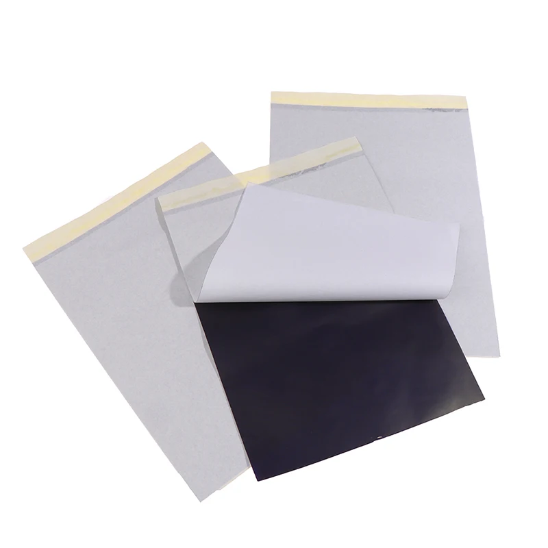 Переводная бумага позволяет отследить или трафаретные изображения от их исходного источника, к копировальной бумаге, и, в конце концов, кожу.