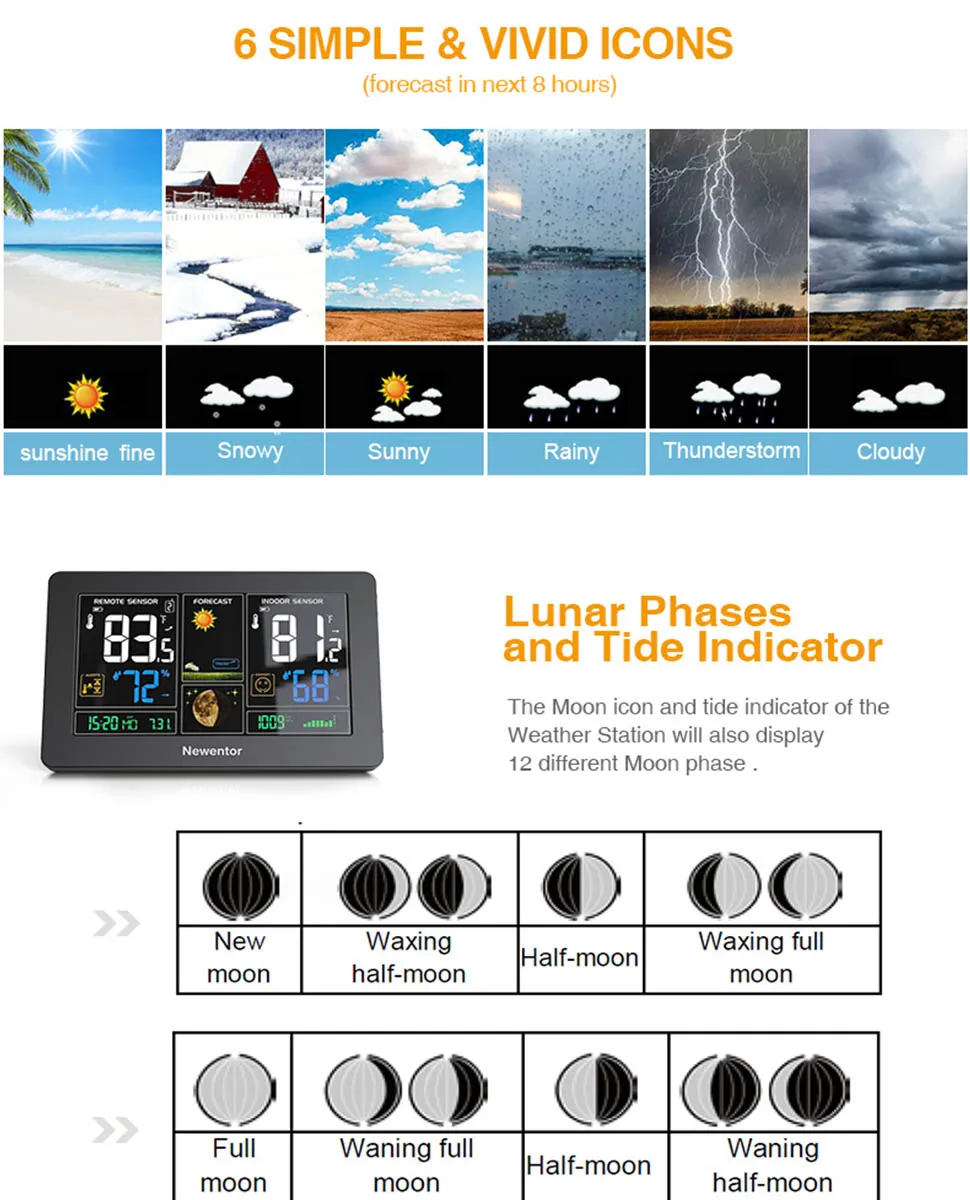 Newentor Q3 красочные 7,5 дюймов Большой ЖК-дисплей Экран Погодная станция