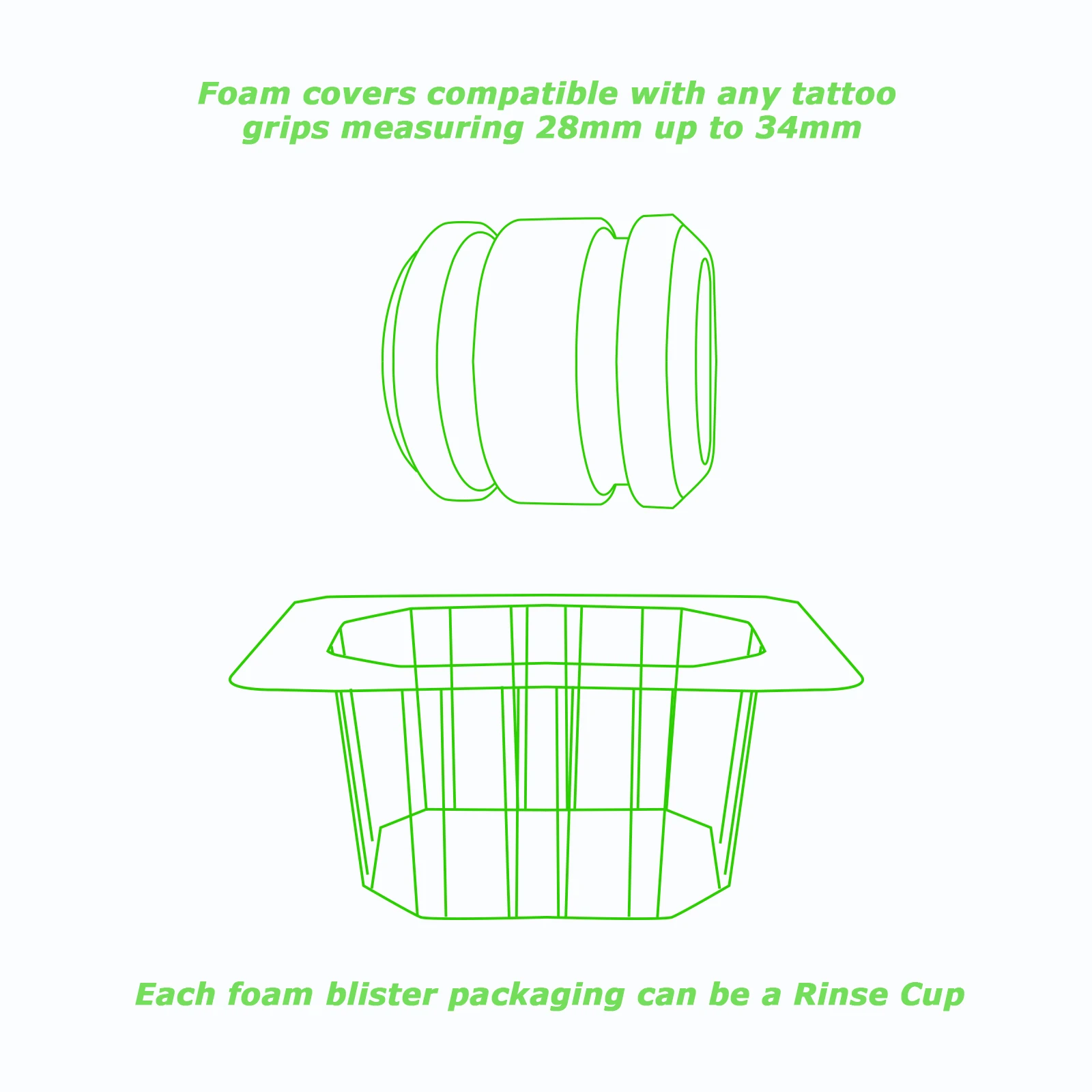 Пенопластовые покрытия совместимы с любыми ручками для татуировки размером 28 мм до 34 мм, специально разработаны для ручек большого размера.