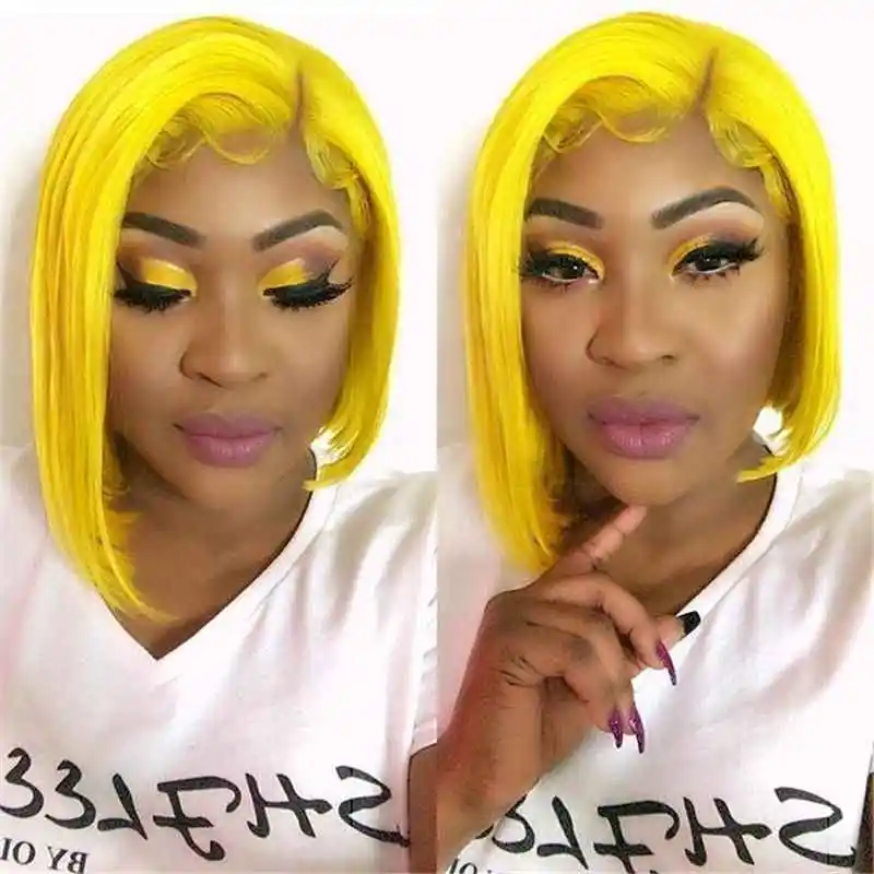 Желтый Цветной парики парик Синтетические волосы на кружеве парик прозрачные кружевные парики 13x4 холодного отжима Синтетические волосы на кружеве парики из натуральных волос с Африканской структурой, Фристайл для черный Для женщин