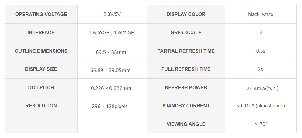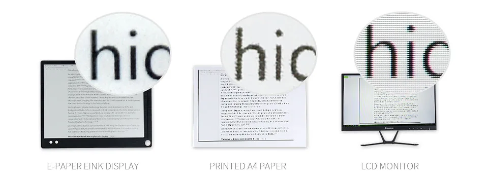 Частичная поддержка обновления, низкая мощность, широкий угол обзора, бумажный эффект