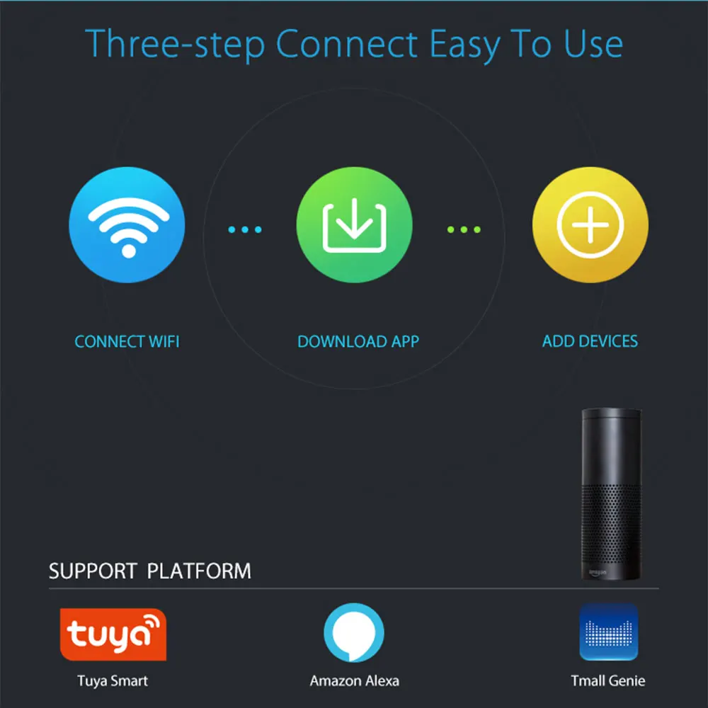 [Tuya App ] -Совместимость с Android и iOS телефоном, Управляйте устройствами из любого места с помощью приложения для смартфона, например, установите комфортную температуру через телефон, прежде чем отправиться домой. (2,4 ГГц сеть Wi-Fi только в том случае, не для 5,0 ГГц)