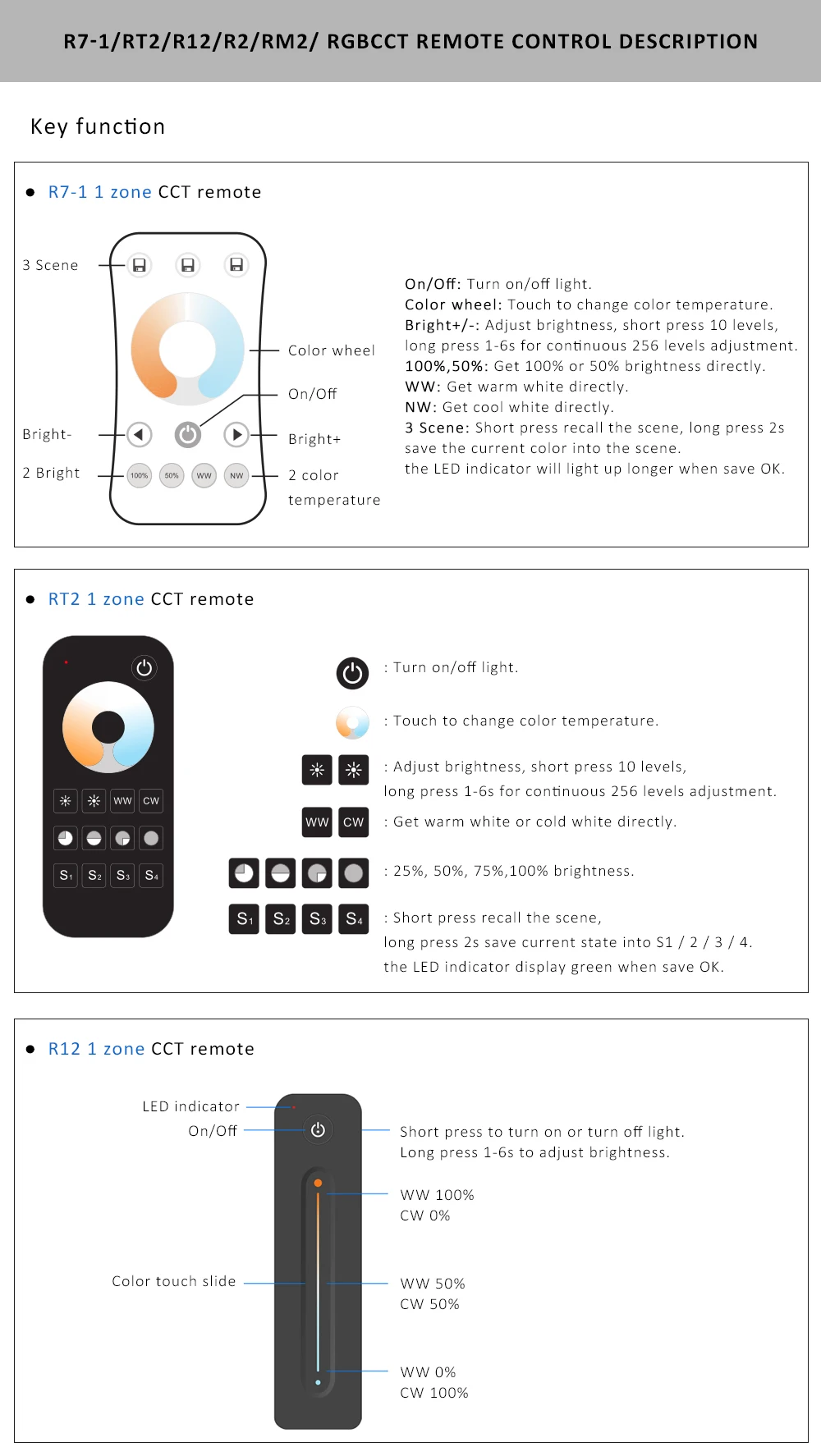 ● Совместимость с RF 2,4G одной зоной или несколькими зонами цветовая температура пульт дистанционного управления опционально.