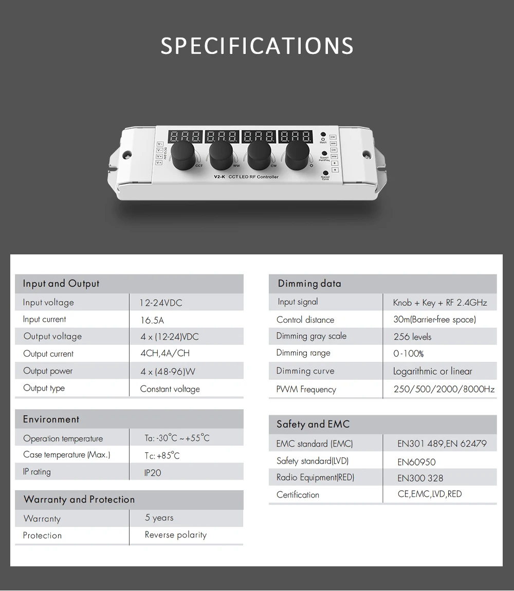 4 ручки CCT WW CW СВЕТОДИОДНЫЙ RF контроллер (V2-K)