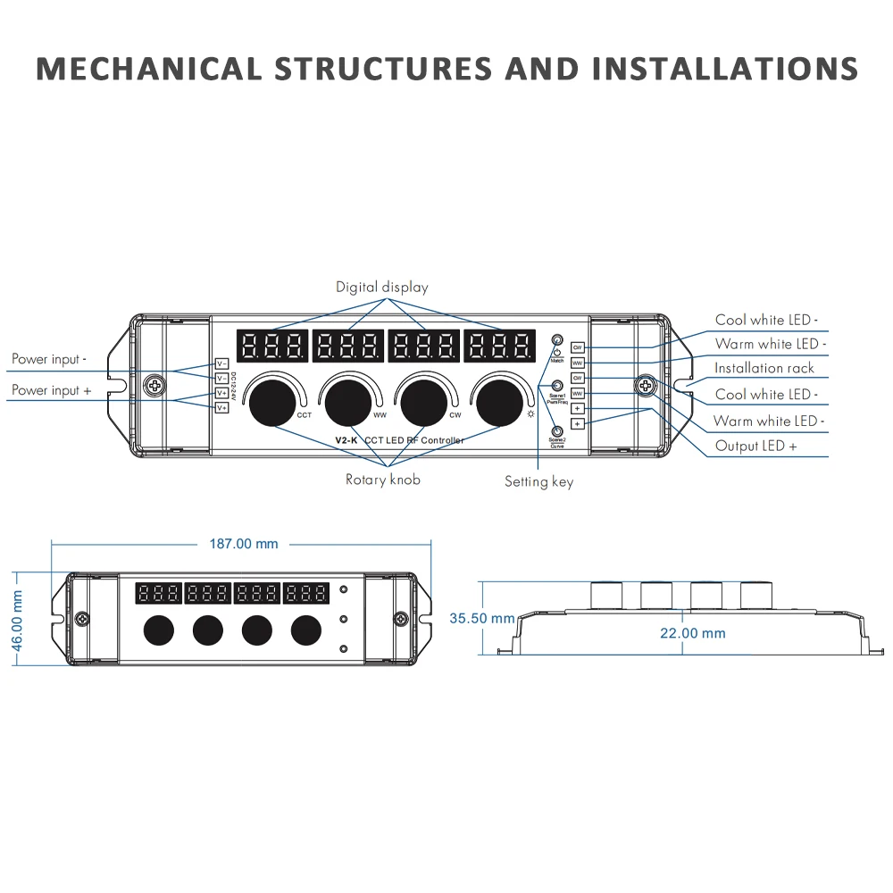 ● Светодиодный RF контроллер постоянного напряжения CCT, также может использоваться как пульт дистанционного управления CCT RF.