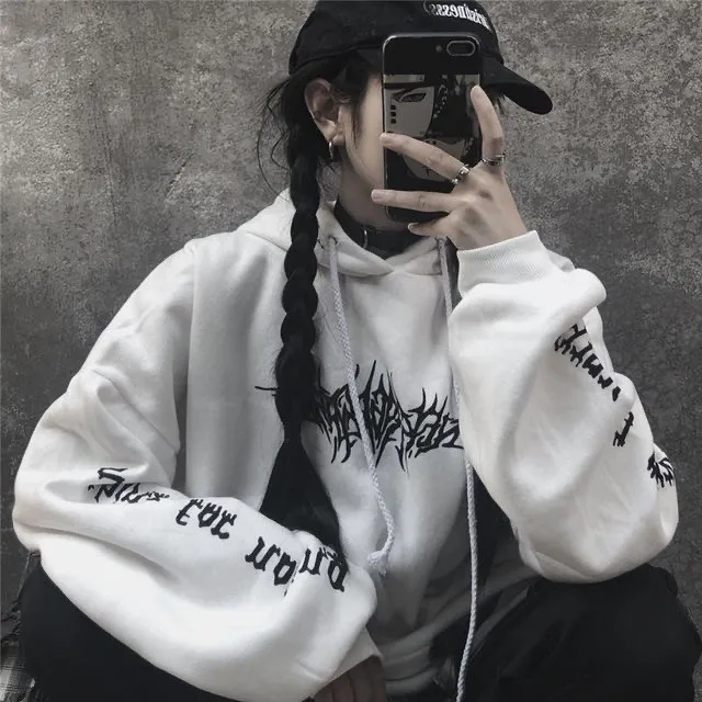 Черно-белые женские толстовки в стиле Харадзюку #5510 свободная повседневная
