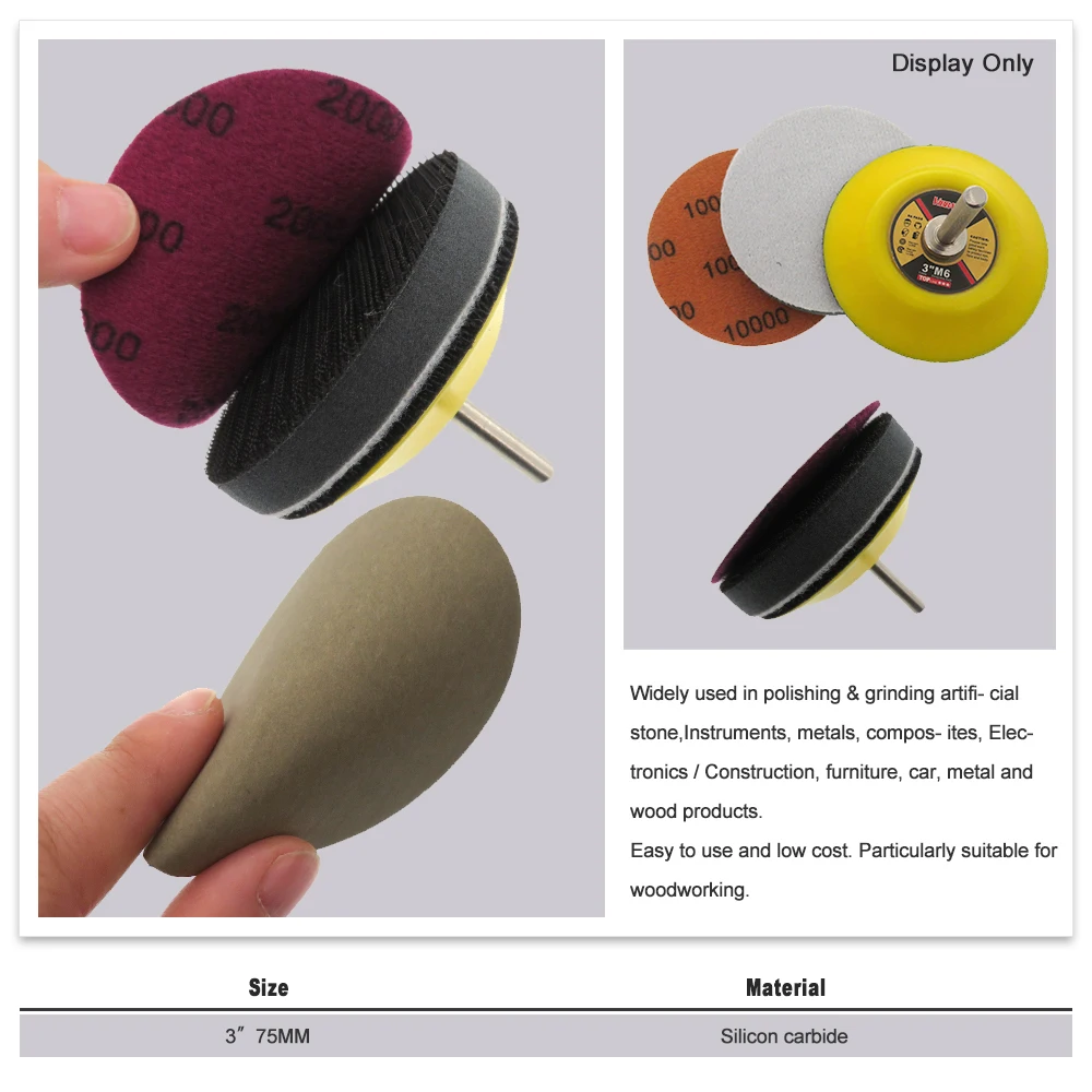 √ Он используется для точного шлифования поверхности формы, а также в камне, лаковой поверхности, зеркальной обработки поверхности, такой как полировка фар. Водонепроницаемые шлифовальные диски также используется для сухой шлифовки, это более сложно, чем белая Сухая наждачная бумага.